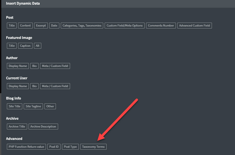 In Oxygen version 3.8 and above, you can select the following red marked section to insert (dynamic) taxonomies WITHOUT link.
